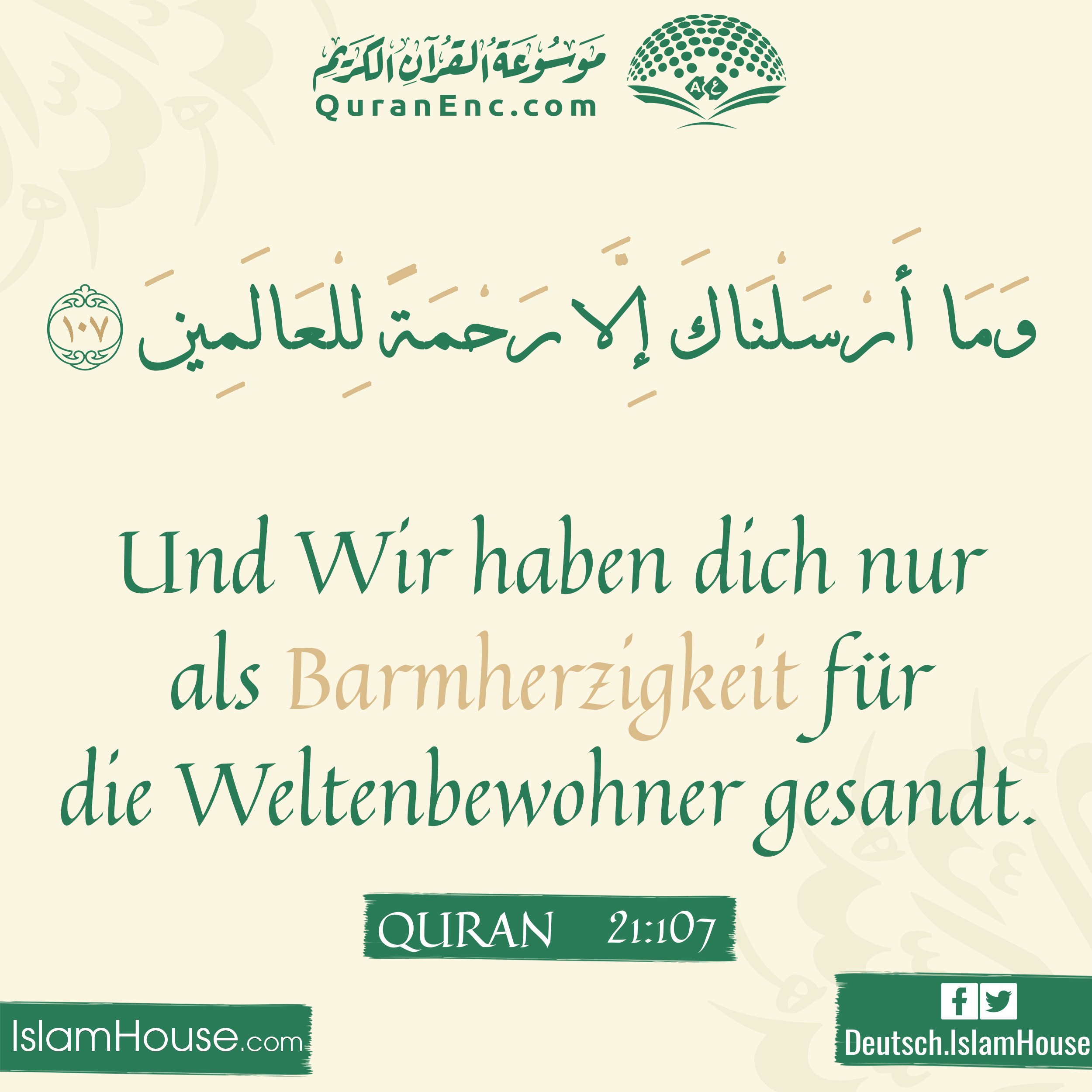 Und Wir haben dich nur als Barmherzigkeit für die Weltenbewohner gesandt.