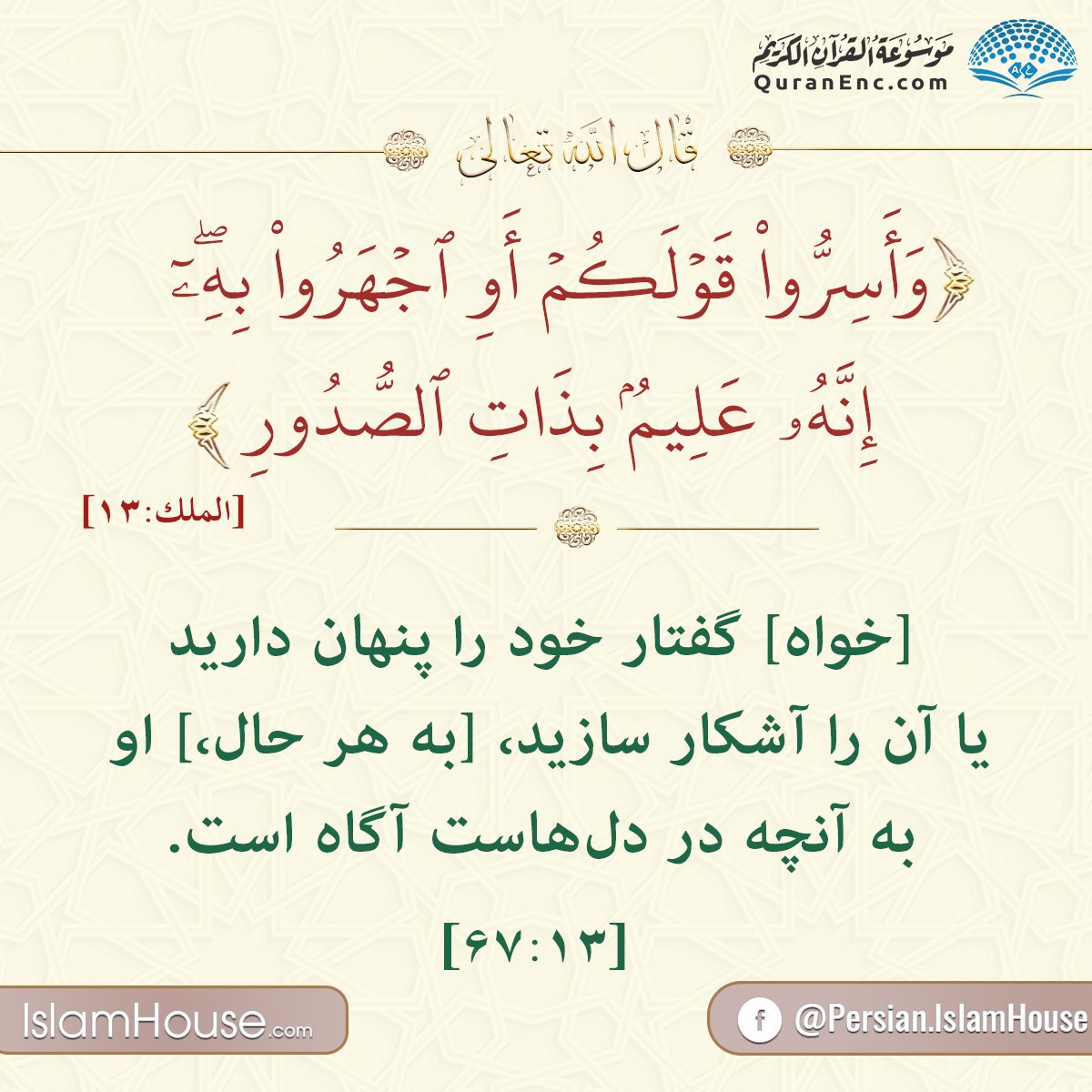 وَأَسِرُّواْ قَوۡلَكُمۡ أَوِ ٱجۡهَرُواْ بِهِۦٓۖ إِنَّهُۥ عَلِيمُۢ بِذَاتِ ٱلصُّدُورِ