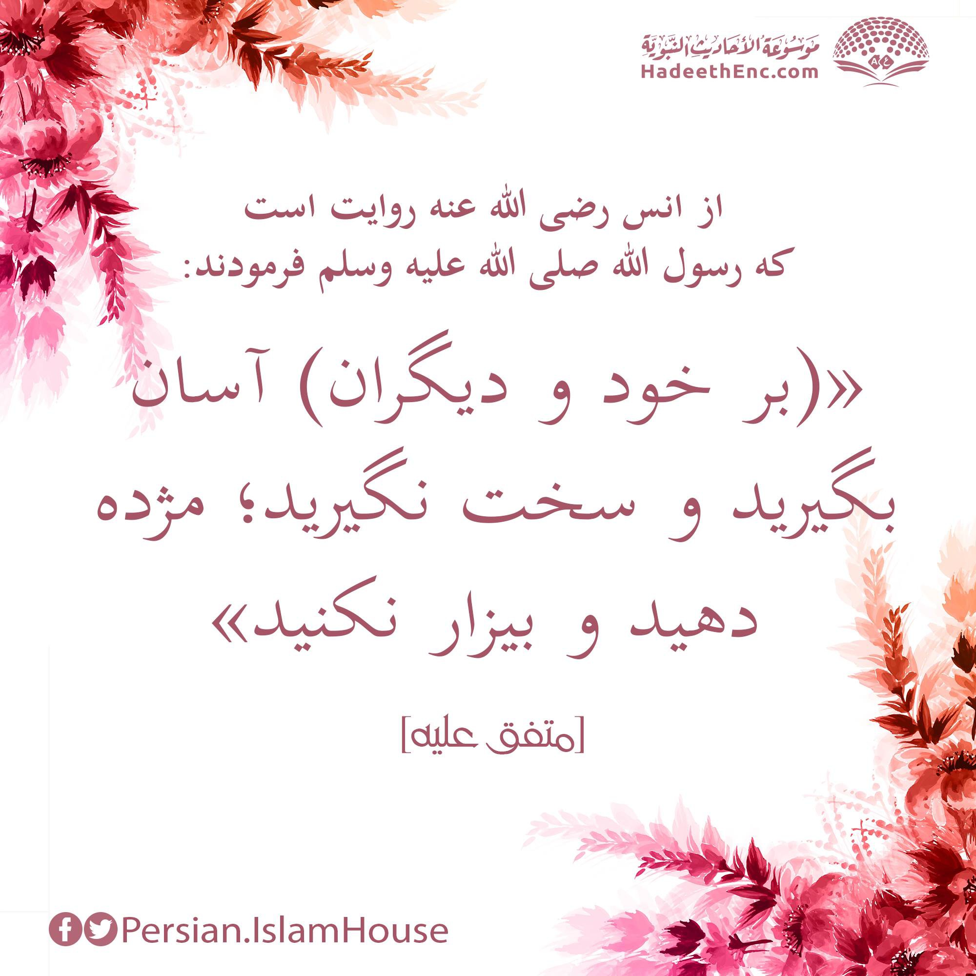 آسان بگيريد و سختگير نباشيد و مژده دهيد و سبب تنفر نباشيد